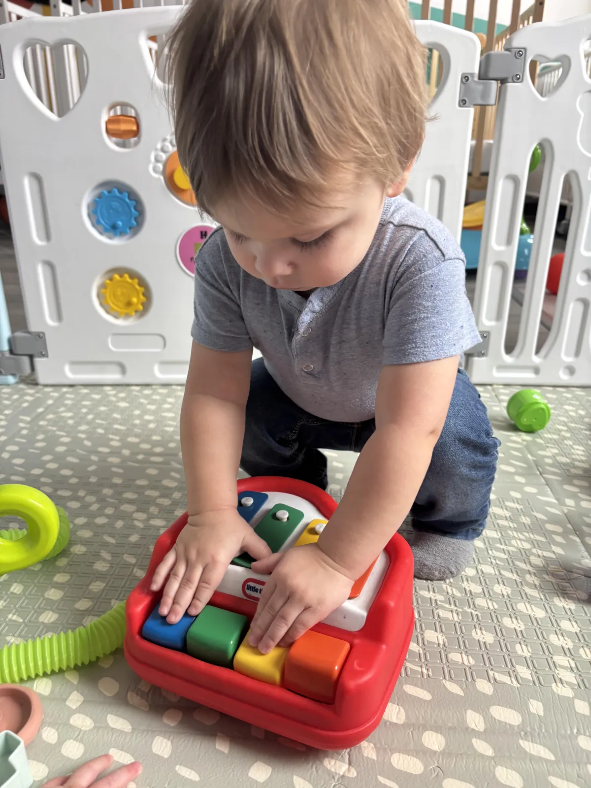 At Little Builders (ages 6 weeks–2yrs), our youngest learners take their first steps in a warm, play-based setting focused on building confidence, friendships, and a love for learning through motor skill development, introduction to letters, numbers, and colors, circle time, prayer, Bible stories, and sensory play.